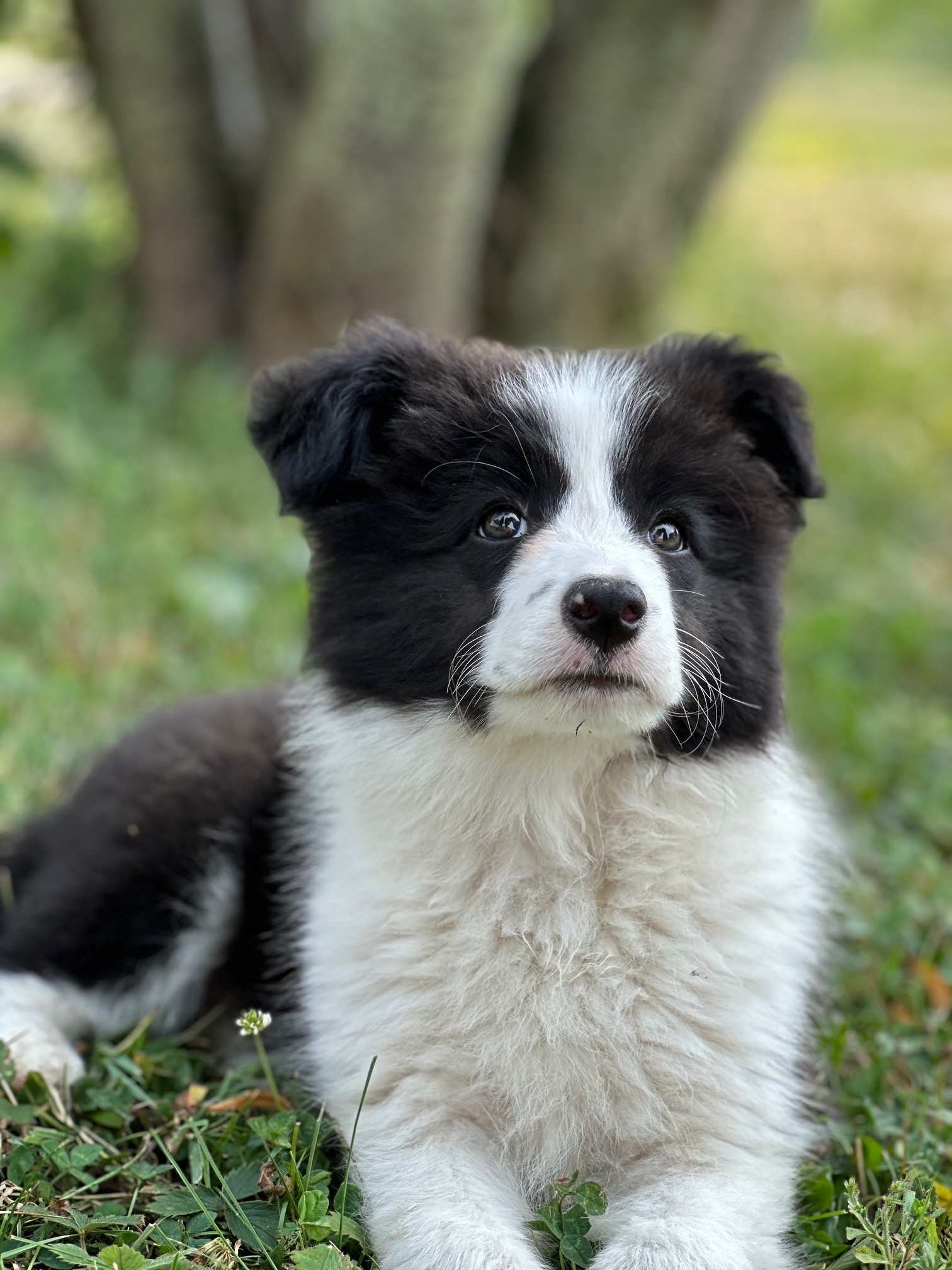 We are excited that we are expecting our spring 2026 puppies. Pups are due early February and will be allowed to go to their new homes at 8 weeks of age (early April). This litter will produce rough coated black & white puppies and we are now accepting reservations. Parents have been health tested , pups are sold on a non breeding spay/neuter agreement. They will be vet checked, de-wormed, micro-chipped and vaccinated before leaving for their new homes.